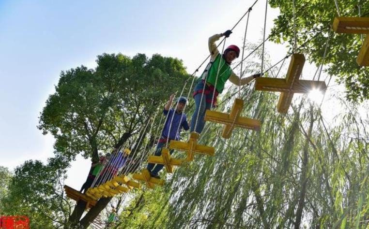 材料:14的攀巖繩、熱鍍鋅鋼絲繩、防腐木、不銹鋼鏈接件